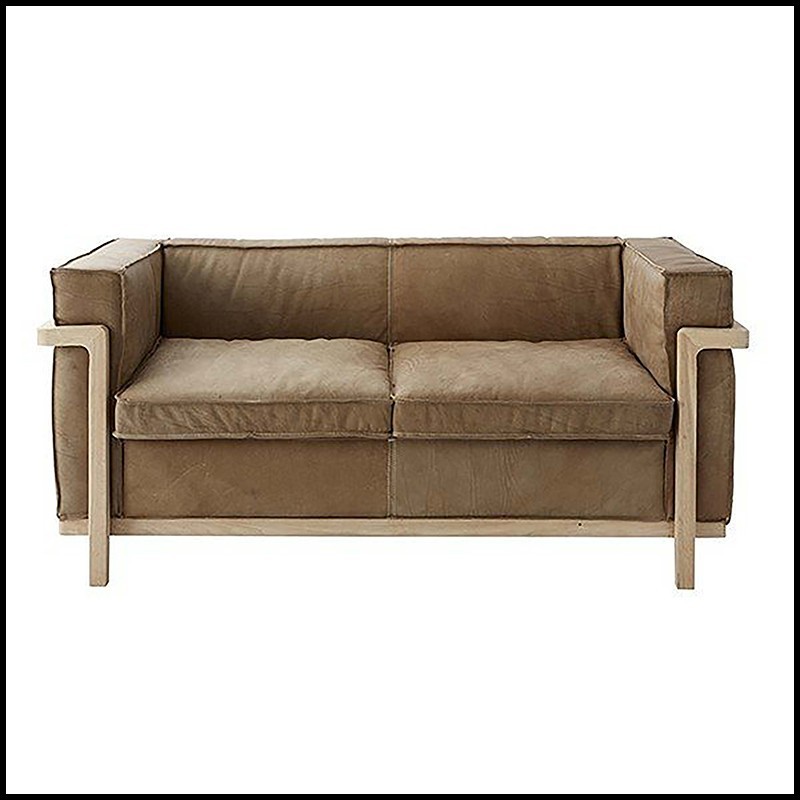 Sofa with raw oak frame and leather seat Bleu Nature - Cobblewood
