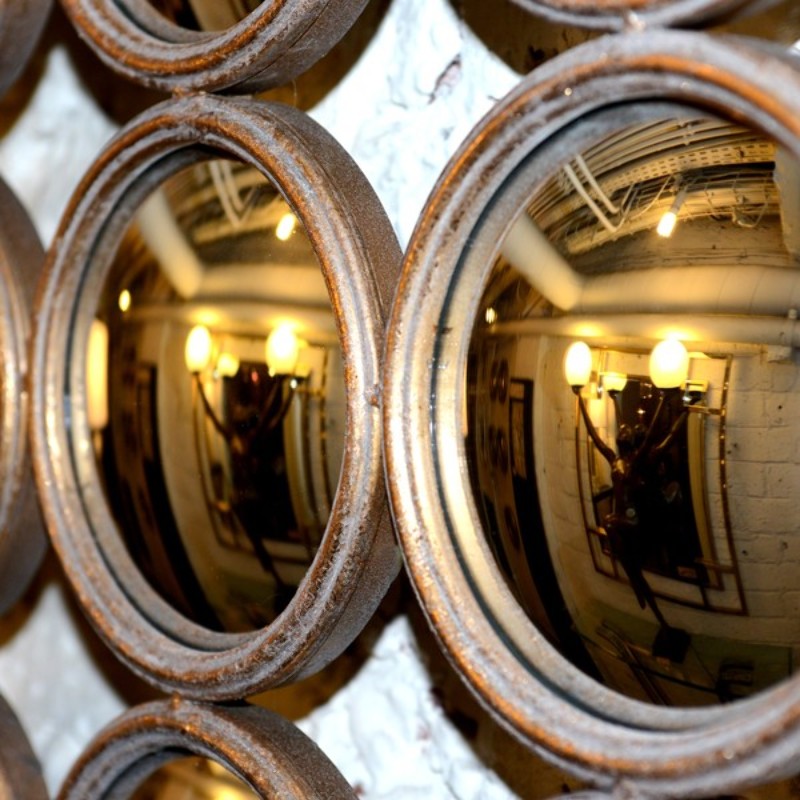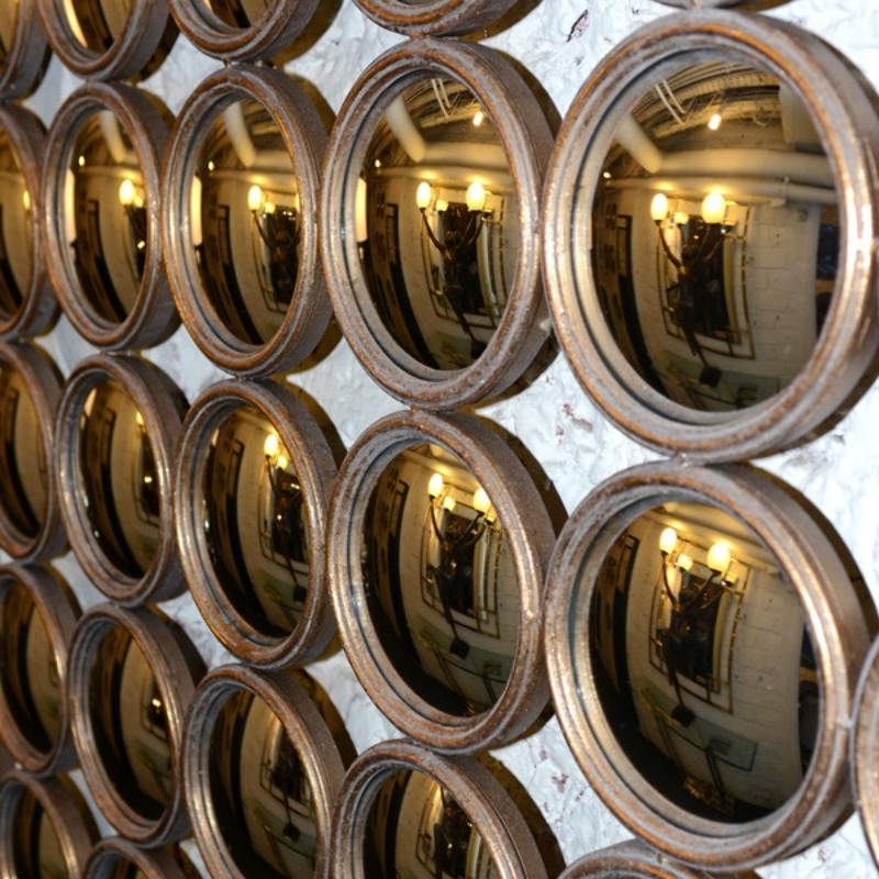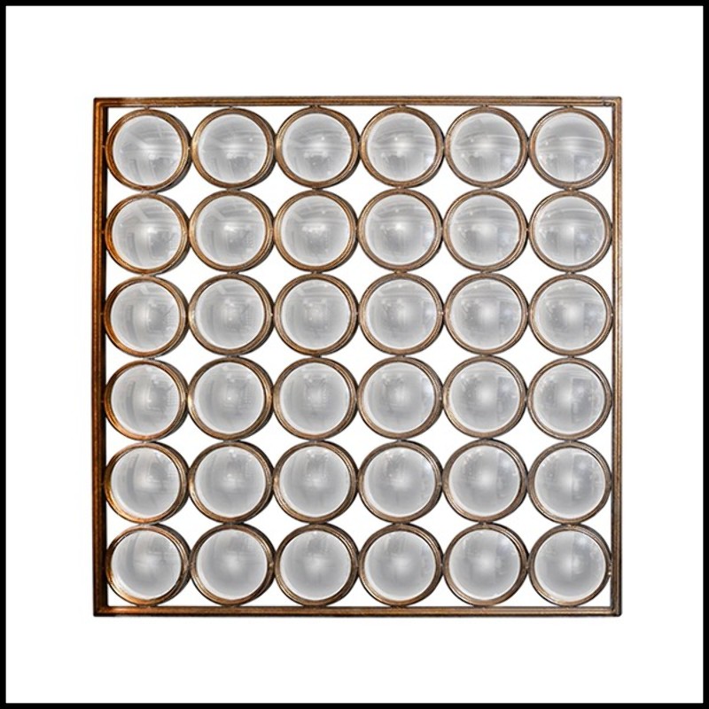 Mirror Facettes Rondes composed of a metal structure with a gold finish.