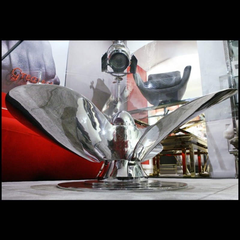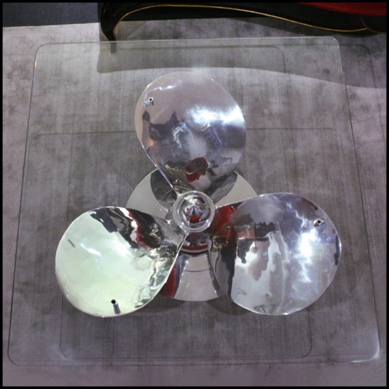 Coffee table Navy Boat Patrol screw propeller in polished aluminium