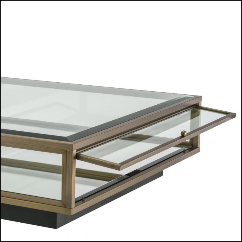 The Coffee Table Ryan is made of clear beveled glass and brushed brass finish metal.