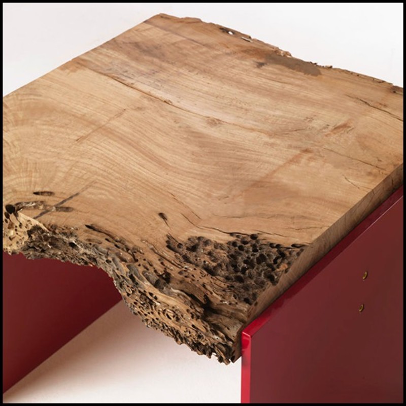 Stool Oak Slat Red with seat in solid oakwood from Venice.