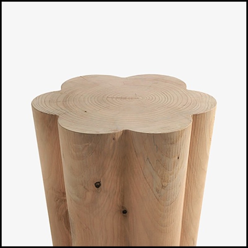 Carved from a solid block of natural cedar wood, the Clover Cedar Stool recalls