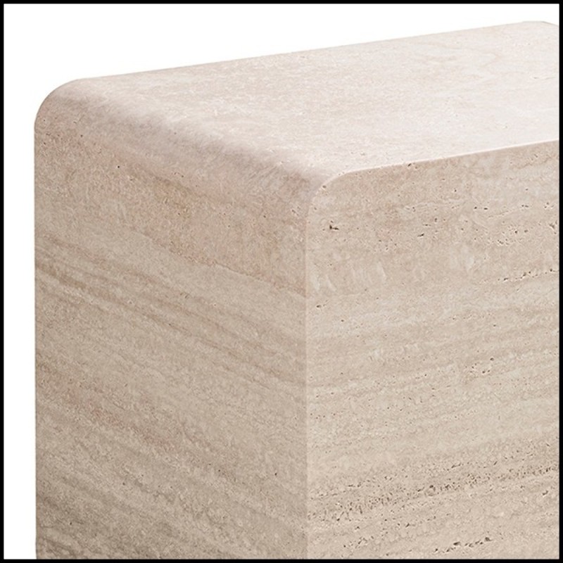 furniture. A Liguria Travertine stool in natural stone, with a polished marble