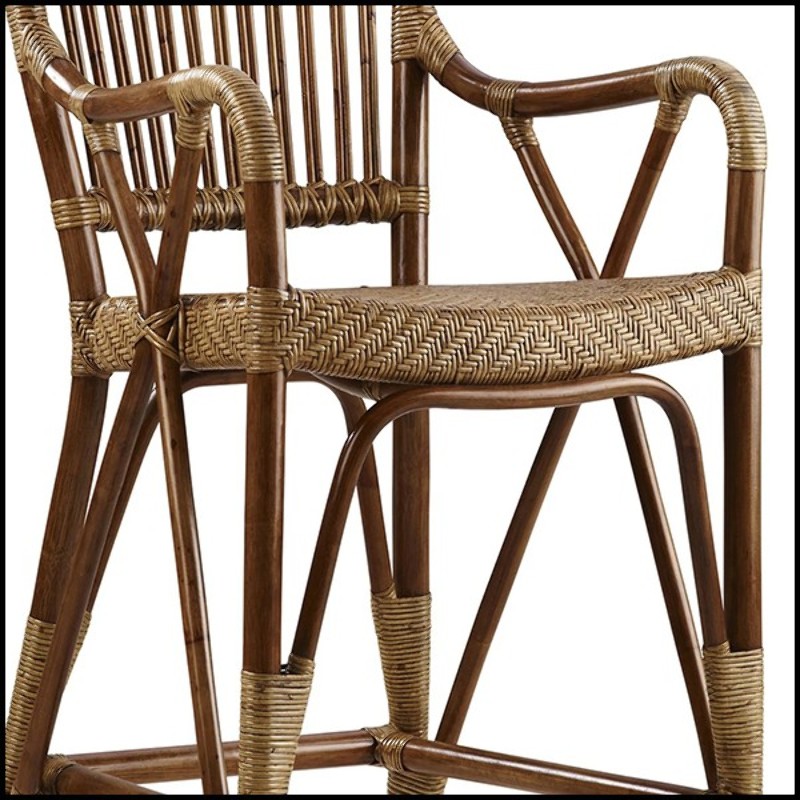 Bar Stool Spadi all in natural rattan, brown finish, hand-crafted rattan.
