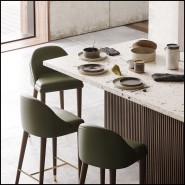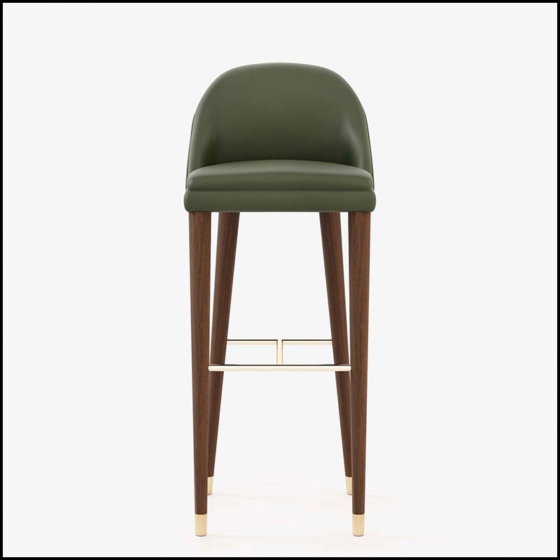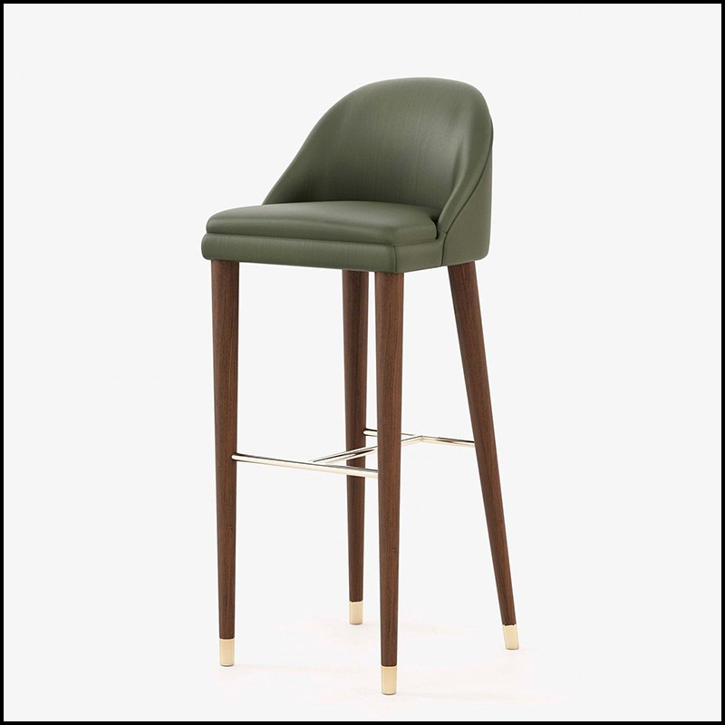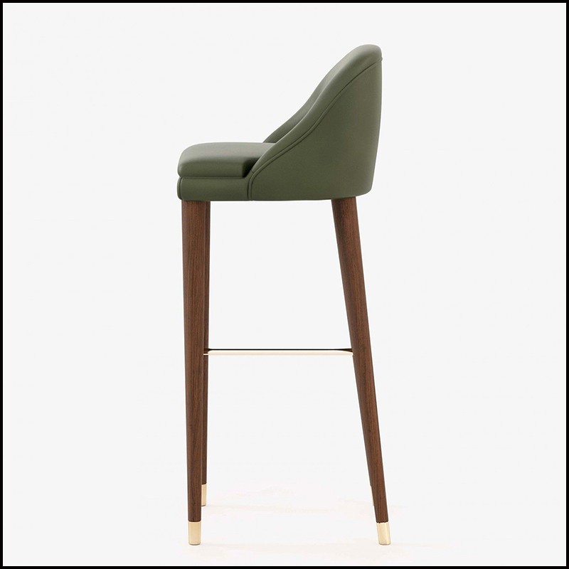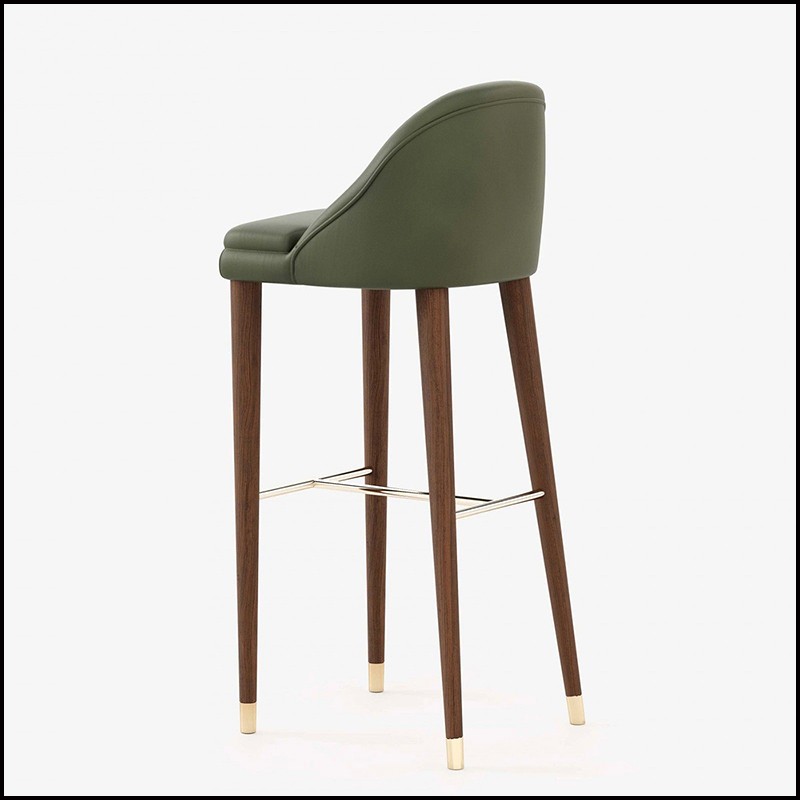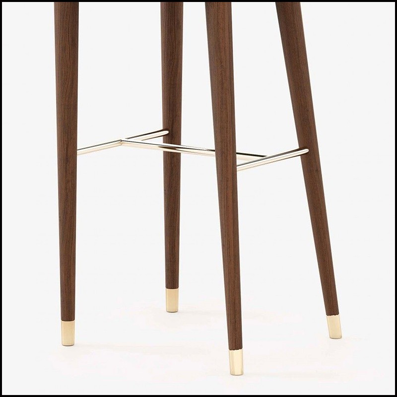 Bar Stool Estoril High features wooden feet in walnut matte finish and with polished stainless steel footrests in gold finish,