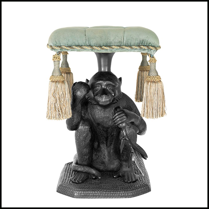 Stool Monkey features a monkey sculpture in black finish