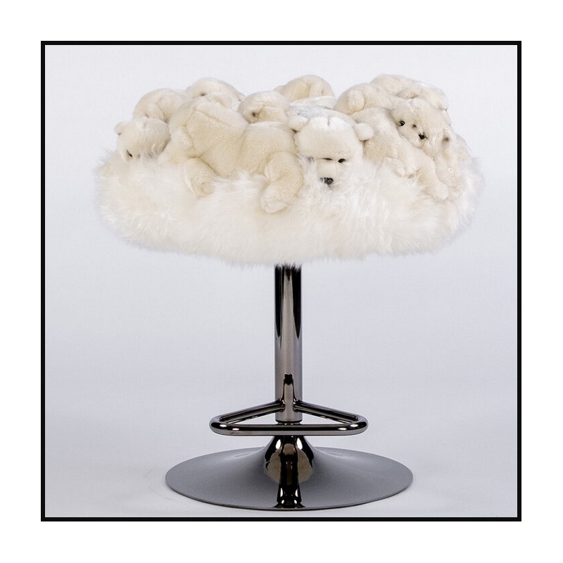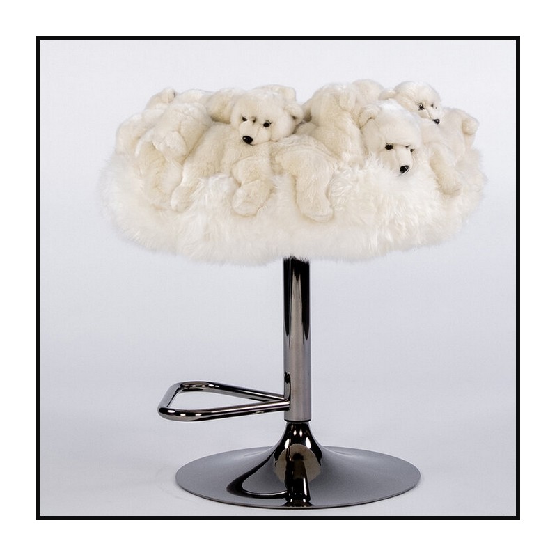 High quality synthetic white fur and white hairs. Exceptional piece, limited edition.