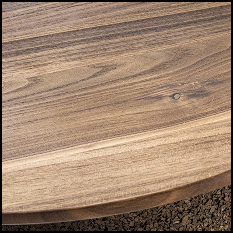 wood with glued slats and beveled edges, stands on a conical Core base,