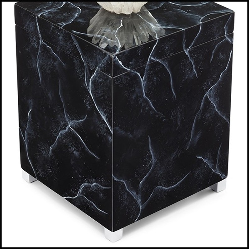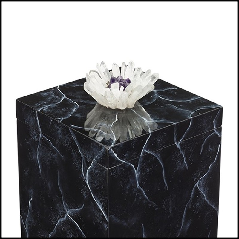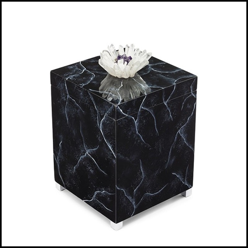 Box hand painted in marble style finish with lid decorated with natural crystal sticks and amethyst stone 162-Crystal Black