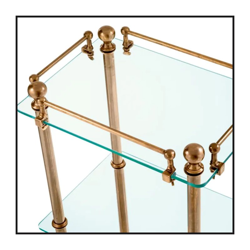 with vintage brass finish offers storage and style.