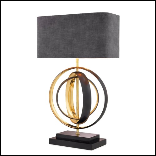 Table lamp Lorenza features a base in iron, antique brass finish.