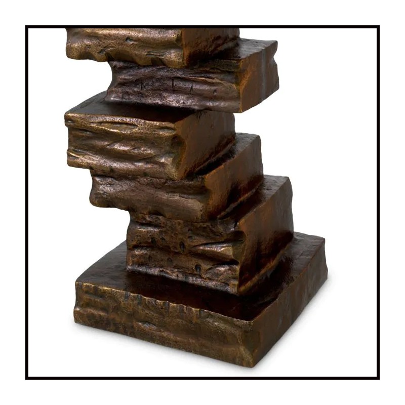Sculpted from metal, its vintage brass finish
