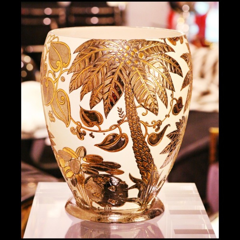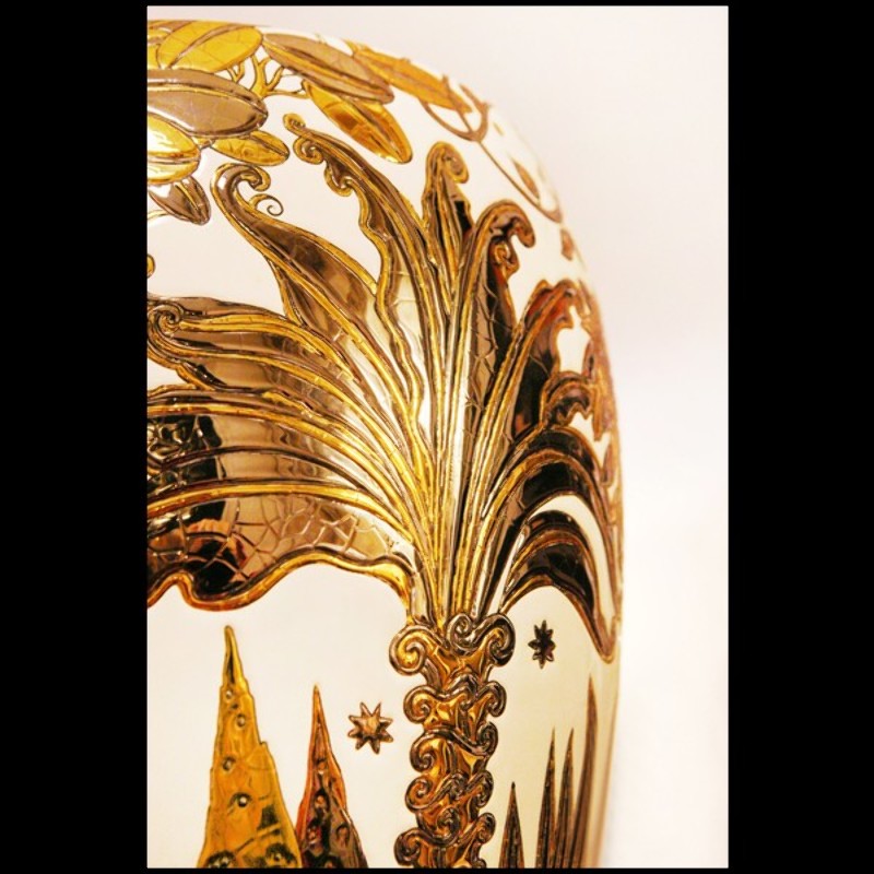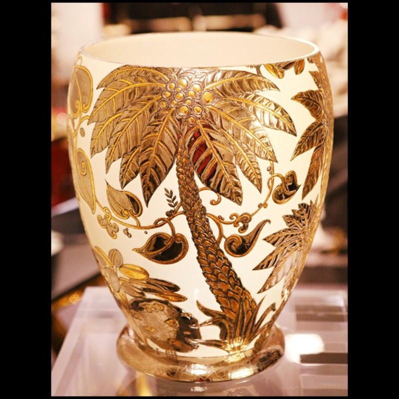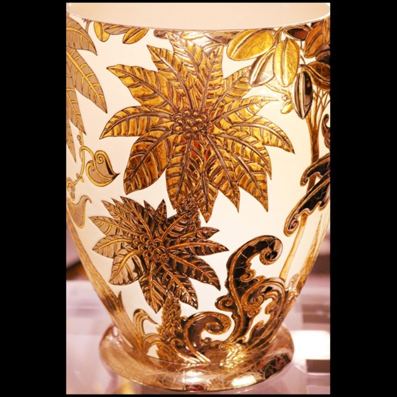 Vase Emaux de Longwy from France limited edition PC-Palmers white and golded
