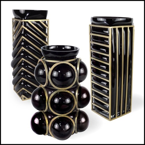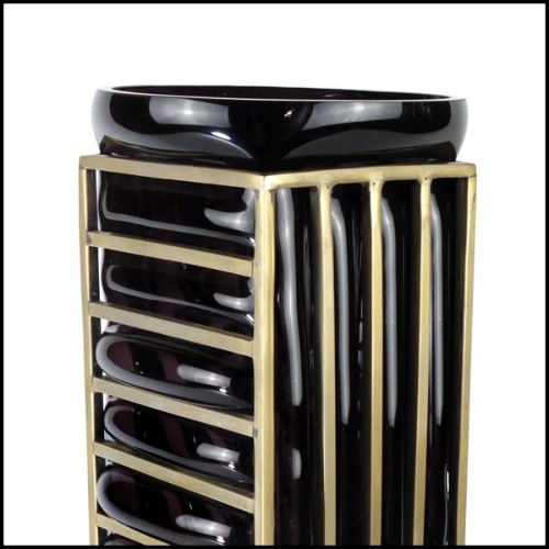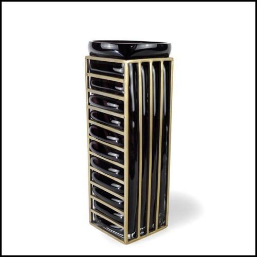 Vase with handblown black glass surrounded by a brass structure 104-Enlace Rectangular