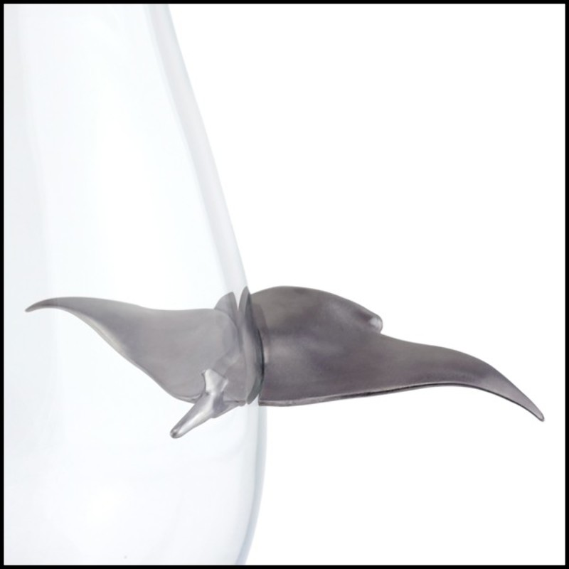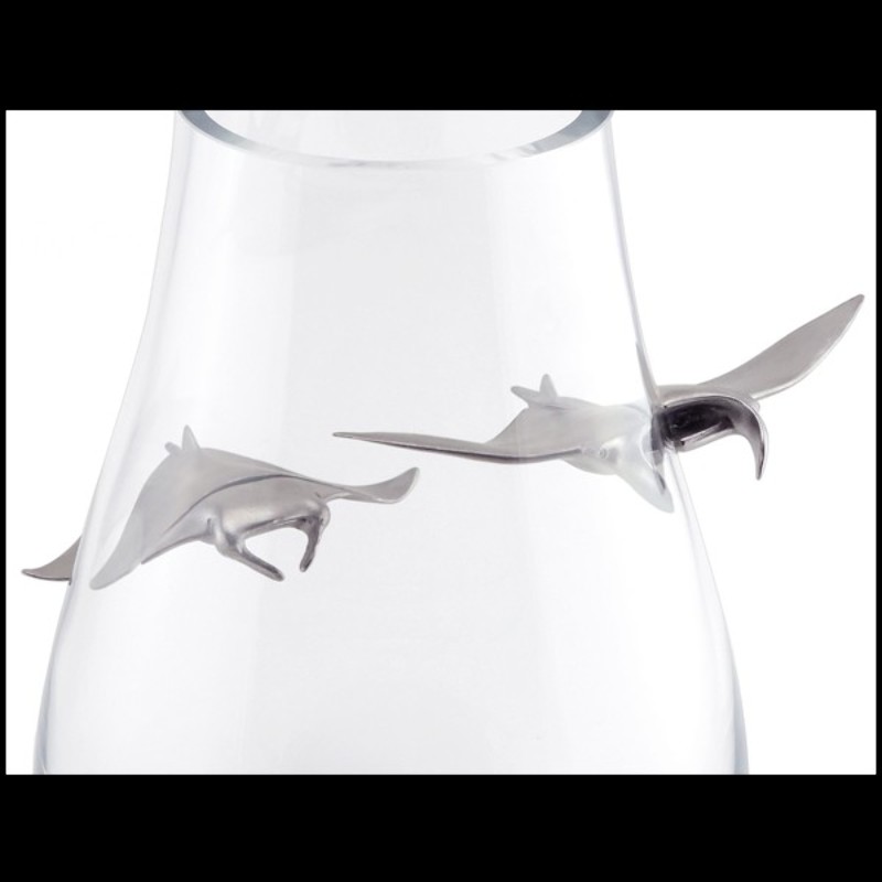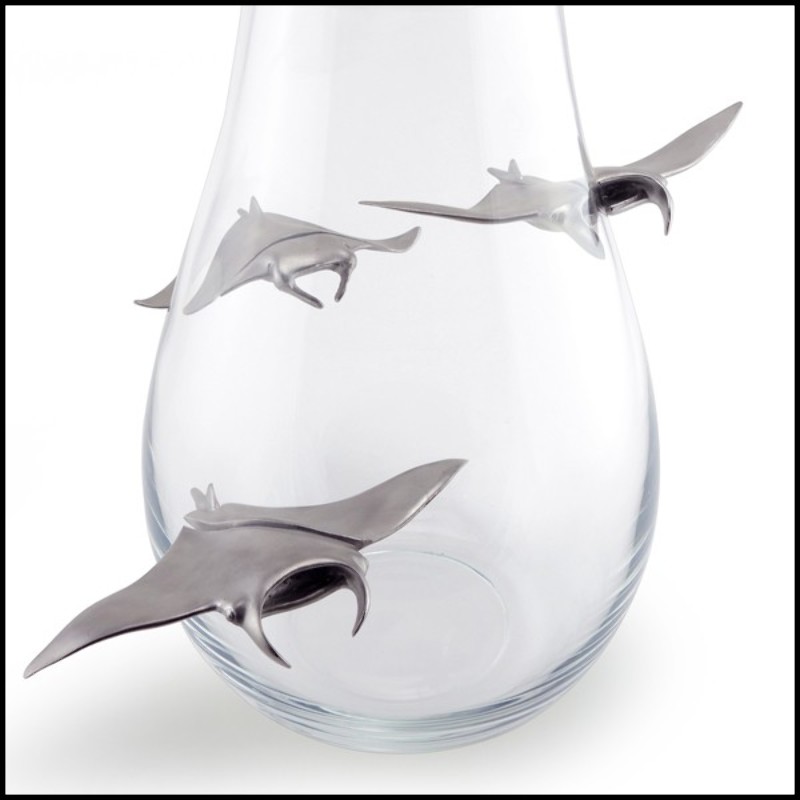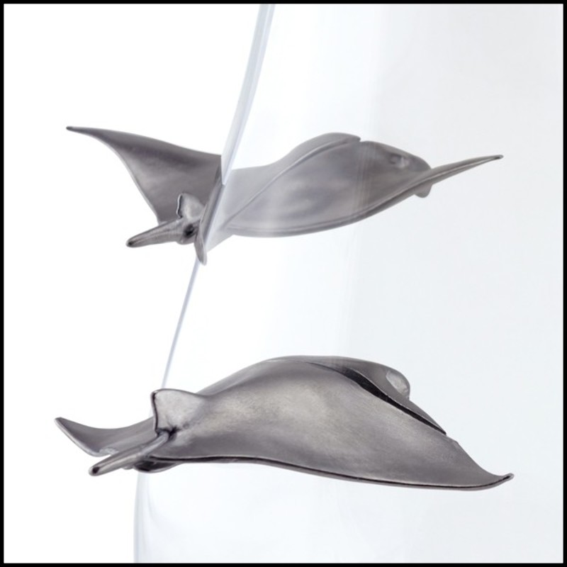 Vase with handblown clear glass and 3 Manta Ray in satinated tin 104-Ray
