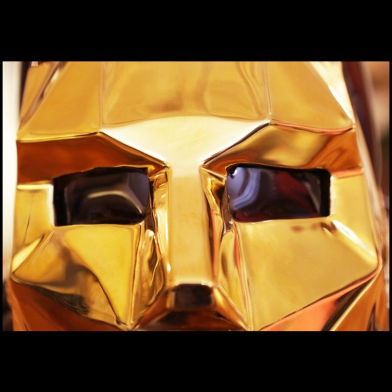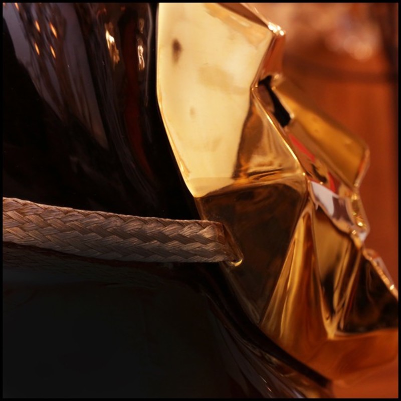 Vase made with hand blown black glass and with mask in bronze with gold finish 104-Venise Mask