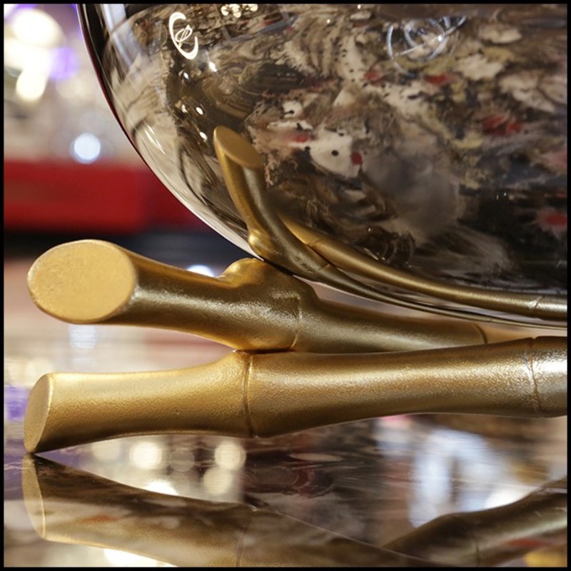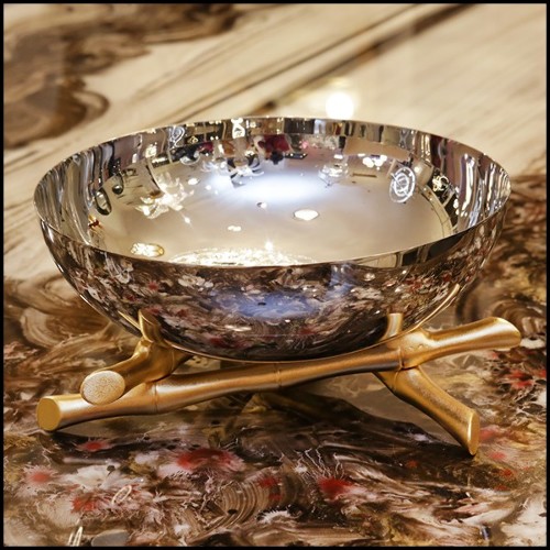 Cup in polished stainless steel et gold-plated 172-Bamboos Round
