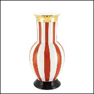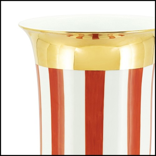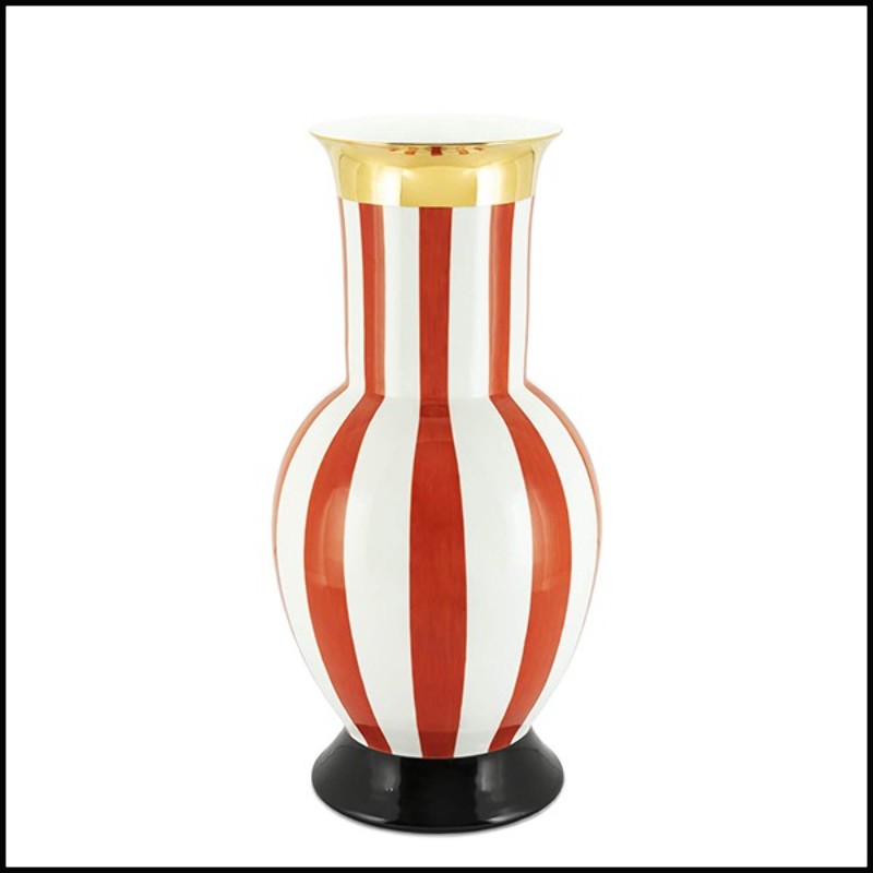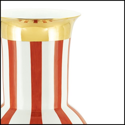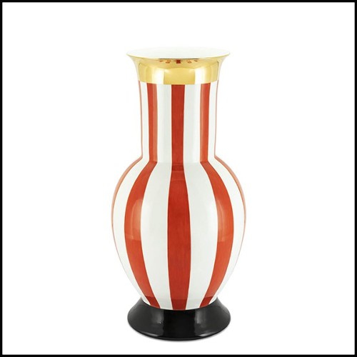 Vase made of porcelain, with white and red stripes.