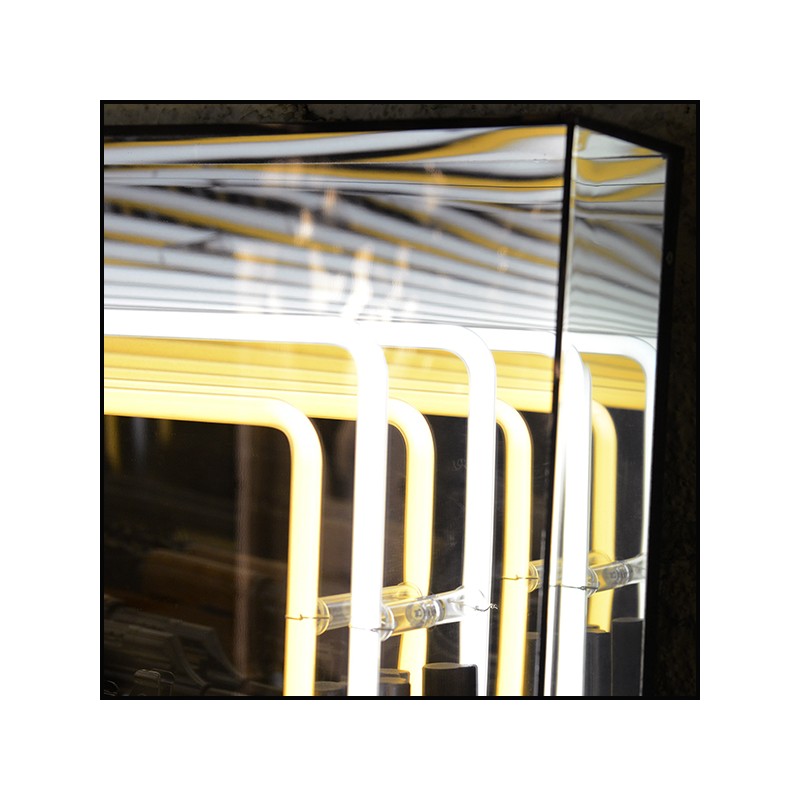 Wall Decoration Art Replica Neon Light Wall, features an infinity mirrored effect created with glassn plexiglass and led lighting.