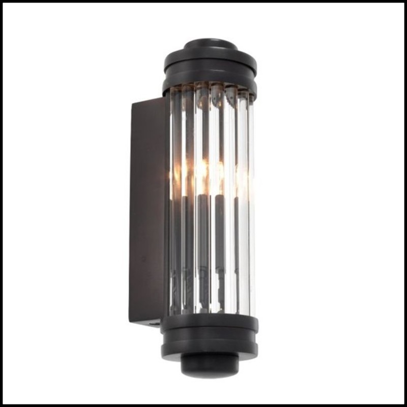 Wall Lamp Gascogne with structure in vintage brass finish and clear glass.