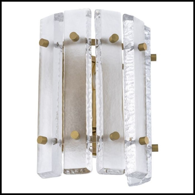 plates of clear glass with frosted fronts capture and refract light to create dramatic