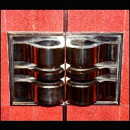 Double handles in nickel-plated copper, cabinet interior with shaped movable shelves with fabric