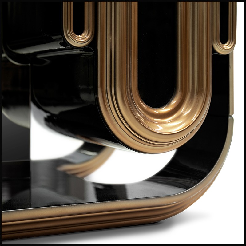 Handcrafted in black and gold high gloss varnish finish.