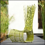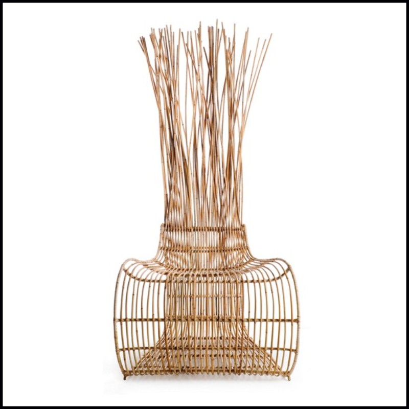 Chair with structure in steel with nylon and natural rattan for indoor use.