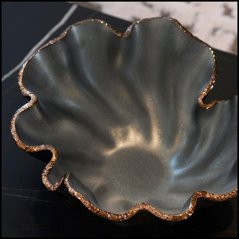 Bowl Lirio tout en verre soufflé avec une garniture en bronze sur le bord,