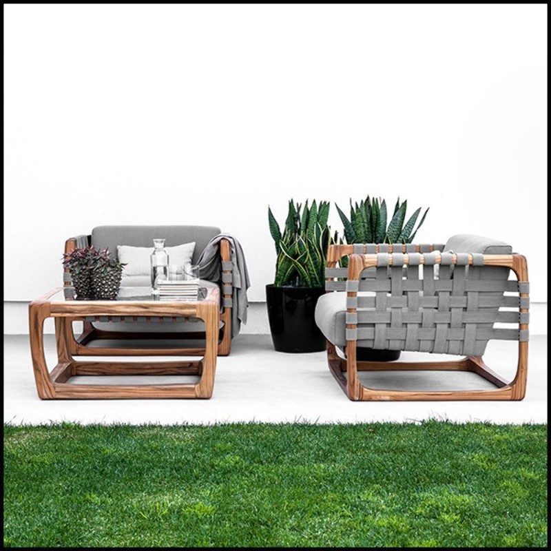 Sa structure en teck naturel massif est associée à un rembourrage généreux,