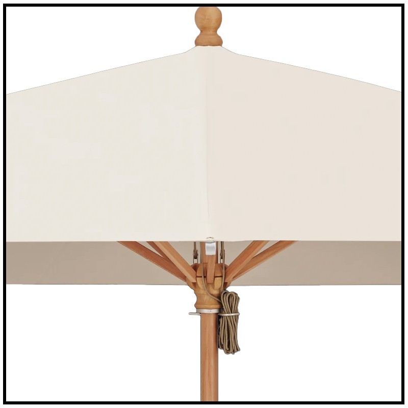 Parasol Piazzino Glatz avec base en bois d'eucalyptus dôté d'une poulie.