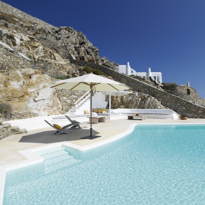 Parasol Glatz Teakwood avec une structure en teck naturel.
