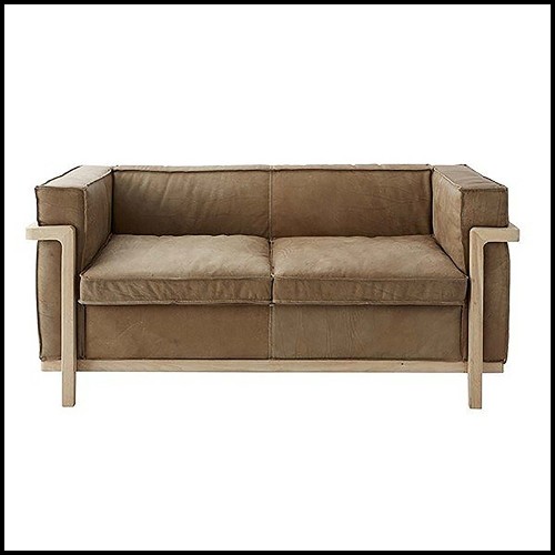 Cette gamme est inspirée du brutalisme par ses courbes franches. Notre canapé deux places 31 - Cobblewood en chêne brut et assise en cuir est disponible en deux dimensions avec seize finitions différentes au choix.