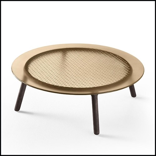 Les essences rares comme la racine de mangrove apportent une dimension organique aux tables basses. Leurs veinures naturelles et leurs motifs uniques transforment chaque pièce en œuvre d'art. Le bois pétrifié présente des nuances minérales exceptionnelles. Sa rareté et sa beauté fossilisée en font un matériau prisé pour les tables basses haut de gamme. Les finitions artisanales subliment ces matériaux bruts : ponçage manuel, application de plusieurs couches de vernis noble, polissage minutieux. On retrouve notamment la table basse 24 - Anabelle dotée d'une base robuste en bois et dont le plateau, en métal finition doré antique, est en forme de cœur ou encore le modèle 24 - Briël qui est en bois de Mindi.