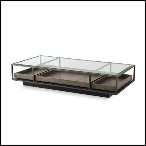 - Verre trempé et métal : le verre trempé est un matériau moderne qui apporte légèreté et élégance aux tables basses de luxe pour un style moderne. Sa transparence permet de créer une sensation d'espace et de fluidité dans le salon. Les surfaces brillantes du verre trempé réfléchissent la lumière, agrandissant visuellement la pièce. Nous avons notamment le modèle 24 - Maxime en acier inoxydable poli et verre transparent.