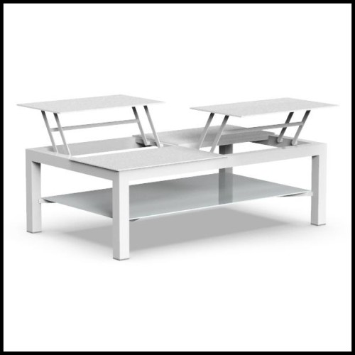 La collection table basse aluminium se décline en plusieurs finitions : brossée, mate ou brillante, permettant de s'adapter aux tendances actuelles. Les modèles en bois massif arborent des finitions naturelles ou teintées, sublimant la beauté des essences utilisées. Certaines créations, comme le modèle 178 - Handing Top, associent différents matériaux comme le verre trempé, la céramique ou les fibres tressées pour des effets visuels saisissants.