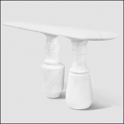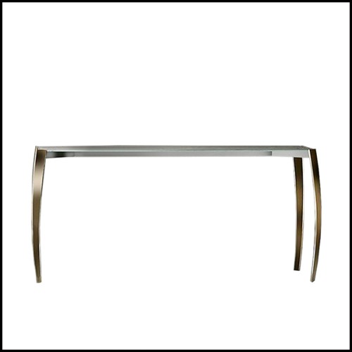 Le marbre, avec ses veinages naturels, est l'un des matériaux les plus prisés dans nos collections de consoles de luxe. Nos artisans sélectionnent minutieusement des blocs de Carrare, d'Emperador ou de Marquina comme pour notre sublime 155 - Carpus, afin de créer des plateaux aux finitions impeccables qui résistent parfaitement au passage du temps. Aussi, le verre, dans ses déclinaisons modernes, apporte légèreté et luminosité à nos consoles à l'image du modèle 24 - Gala. Les techniques de trempage et de feuilletage nous permettent de proposer des modèles aux formes audacieuses tout en garantissant une solidité à toute épreuve.