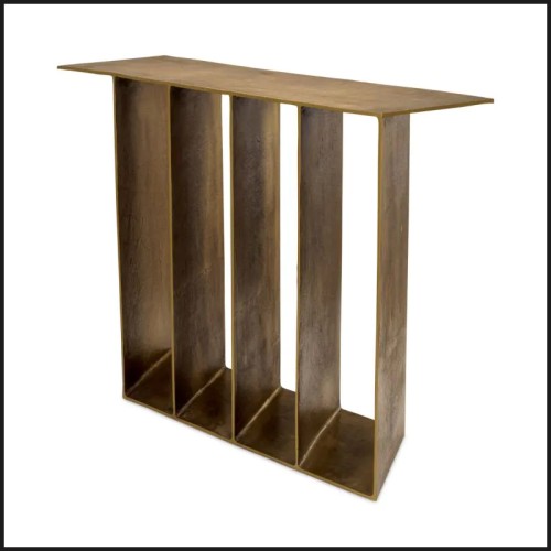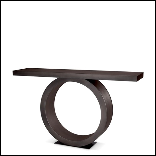 Le style industriel influence également nos créations les plus modernes à l'image du modèle 24 - Gregorio. L'association du métal brut et du bois massif crée des contrastes saisissants qui séduisent une clientèle aimant l'authenticité. Nos consoles inspirées de ce courant sont robustes et ont beaucoup de caractère, tout en conservant l'élégance propre aux pièces de luxe. Ces modèles s'inscrivent dans une tendance qui valorise la matière brute et les finitions artisanales. Le métal patiné, le laiton brossé ou le bronze vieilli s'associent à des essences de bois rares comme le noyer ou le palissandre pour créer des pièces uniques.