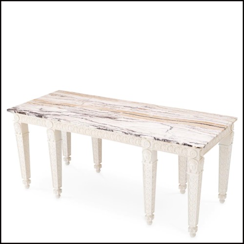 Les consoles de luxe incarnent l'élégance et l'excellence artisanale. En effet, chaque pièce est le résultat d'un grand savoir-faire, où la maîtrise des techniques traditionnelles se mêle à une forte créativité. La sélection de matériaux nobles, tels que le bois précieux, le marbre ou les métaux haut de gamme, confère à ces créations une qualité exceptionnelle et un caractère unique.