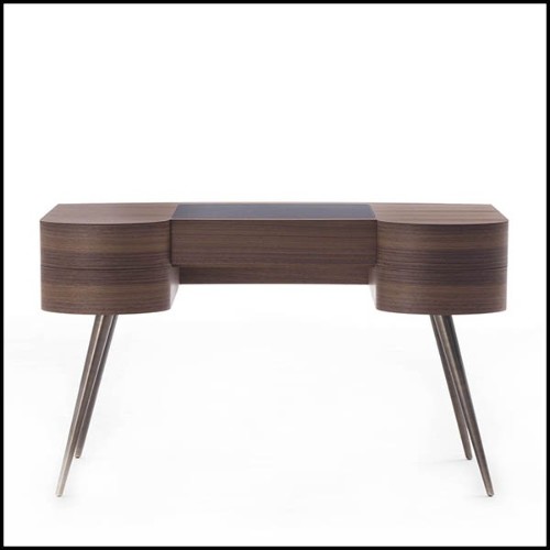 Notre collection de bureaux en acajou, comme notre sublime modèle 24 - Lawrence, et en noyer, comme notre bureau 155 - Tarius s'inscrit dans cette tradition classique d'excellence, où les détails raffinés comme les pieds en laiton brossé témoignent d'un savoir-faire exceptionnel.
