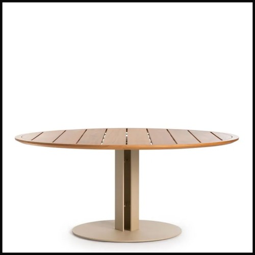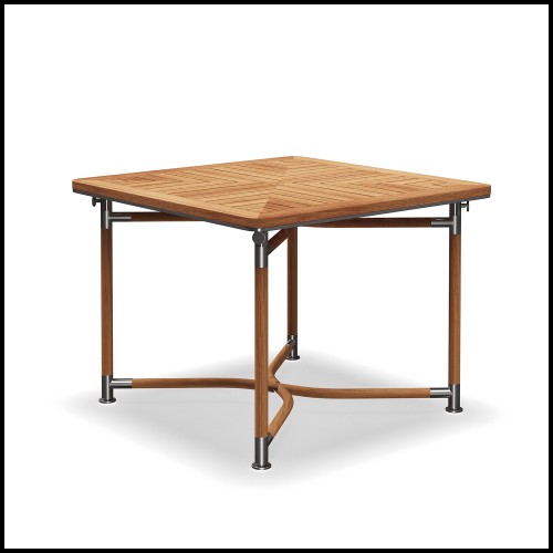 Le teck grade A, sélectionné pour sa densité exceptionnelle et sa résistance naturelle aux intempéries, constitue la base de nombreux de nos modèles. Un plateau en verre trempé, traité anti-UV, apporte légèreté et modernité. L'aluminium thermolaqué et l'acier inoxydable 316L garantissent quant à eux une tenue parfaite face aux conditions extérieures.