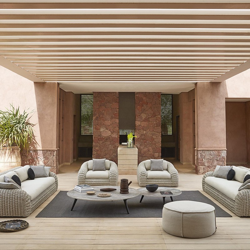 Table basse Torsia Ø148 est dotée d'une structure en teak brossé finition nero,