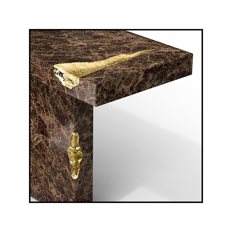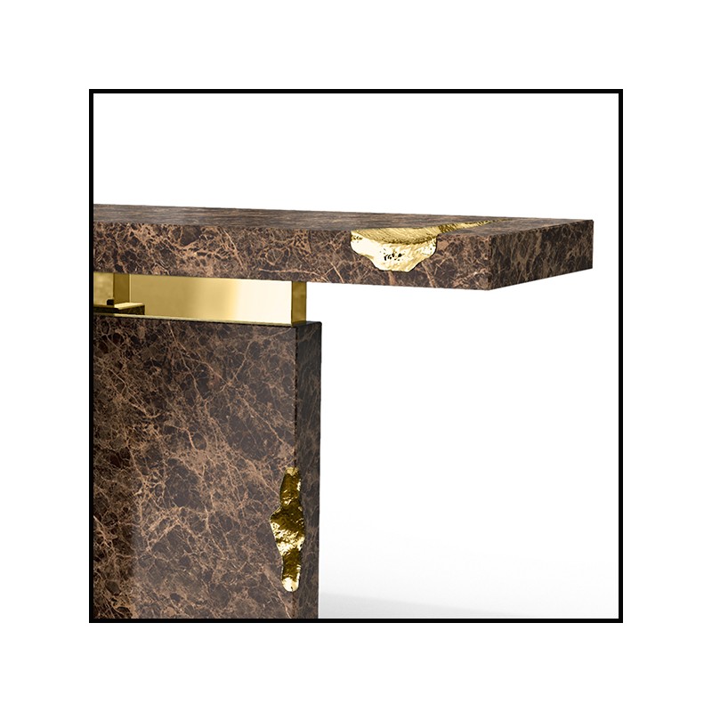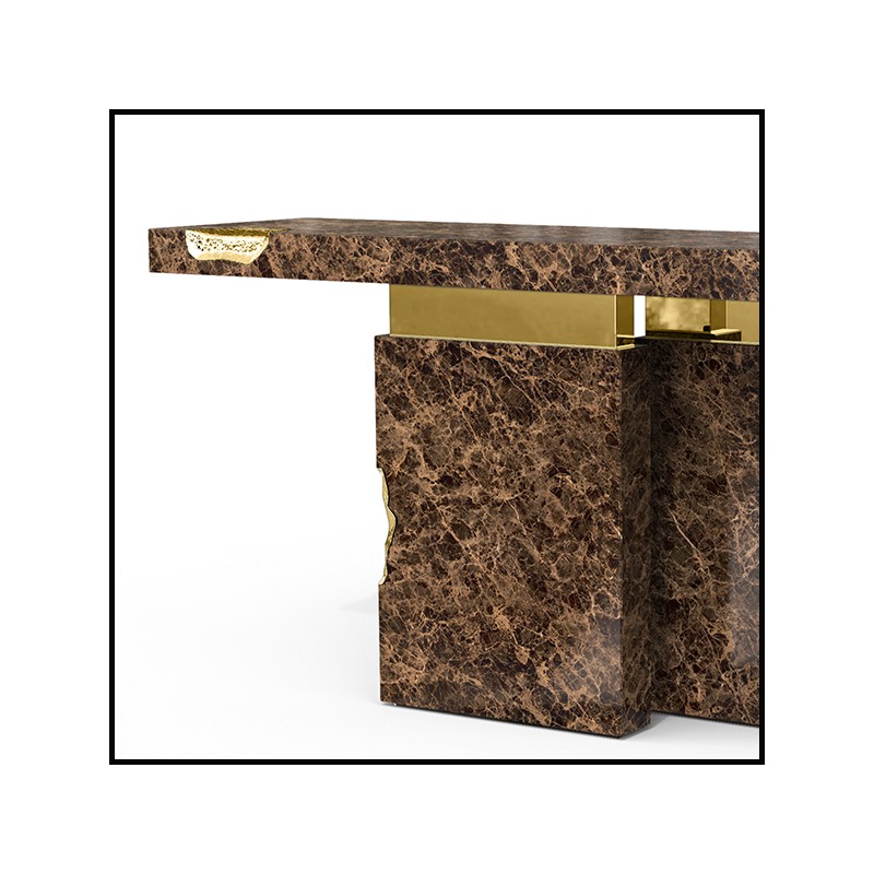 Console Majestic Brown est réalisée en marbre marquina Emperador de couleur marron, sculpté et poli.