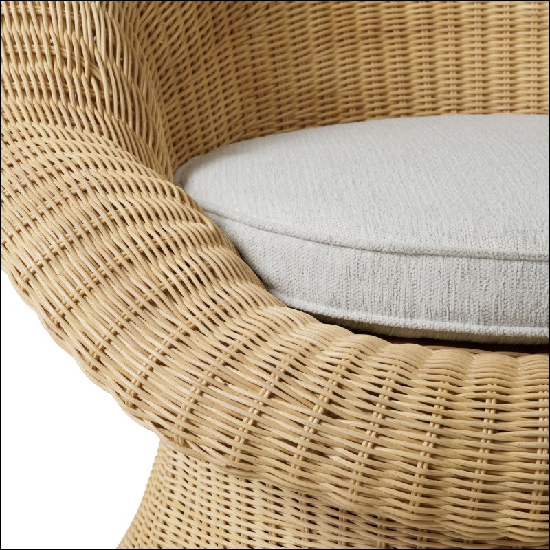 Les matériaux utilisés pour ce fauteuil, tels que le rotin, offrent une texture