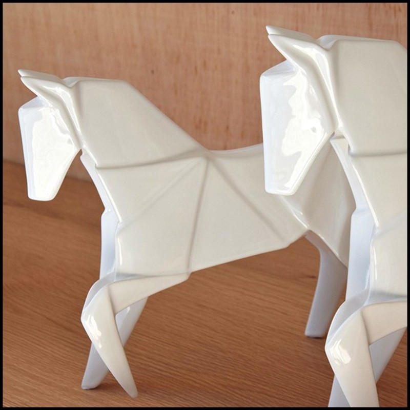 Sculpture étalons set de 2 en céramique finition blanc 195-Stallion White Set