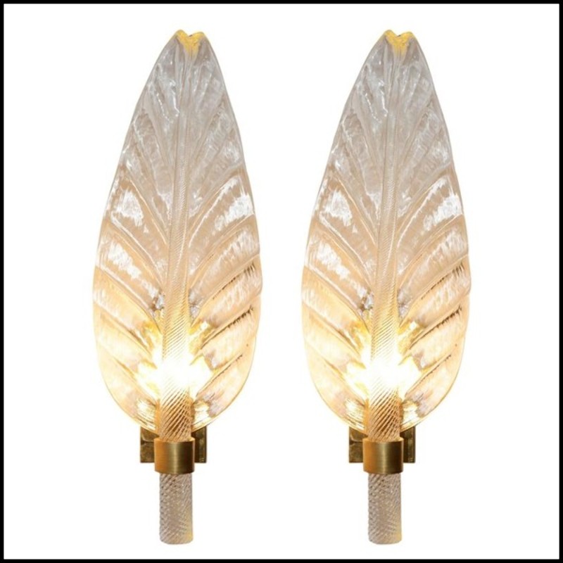 Set de 2 Appliques Leaves en véritable cristal de Murano