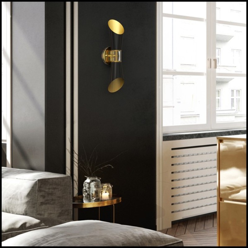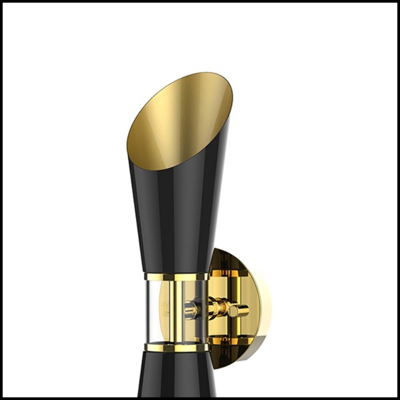 Avec 1 abat-jour en laiton laqué noir. Avec 2 ampoules, support type