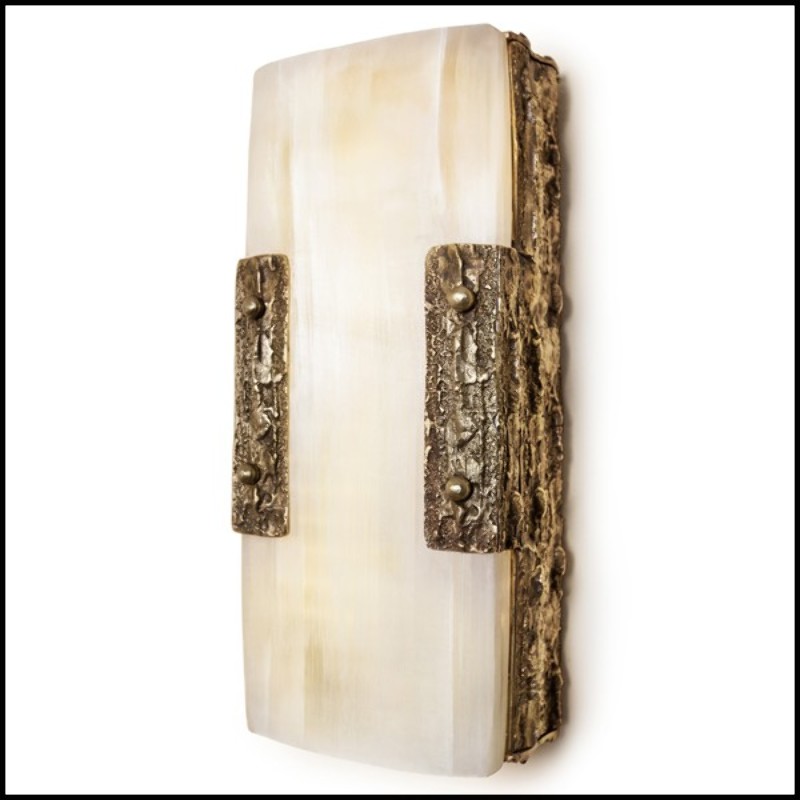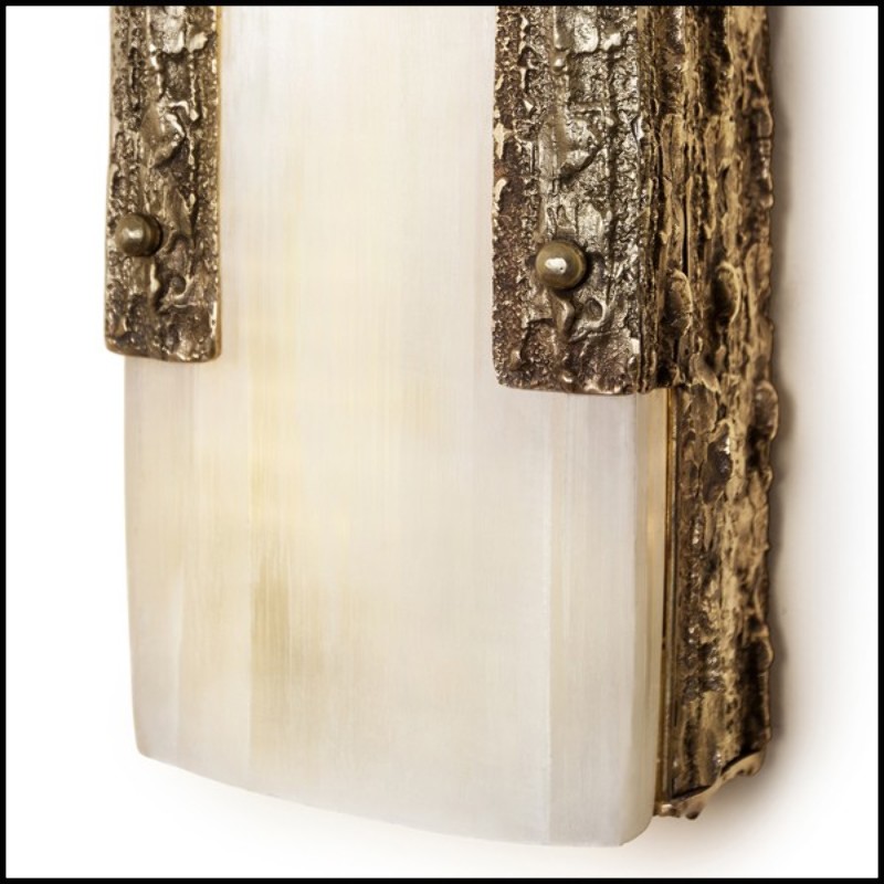 Applique avec structure en bronze forgé massif et sélénite solide 179-Quantum