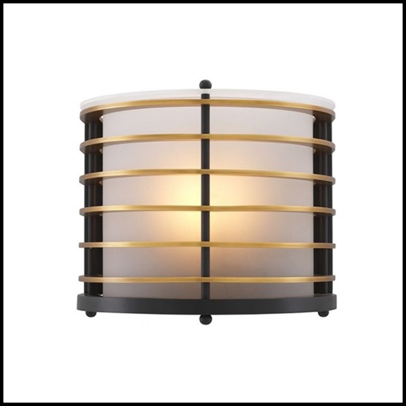 Abat-jour semi-circulaire en verre dépoli entouré d'une cage