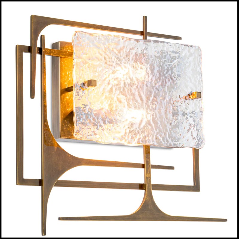 et d'un abat-jour rectangulaire en verre soufflé à la main.